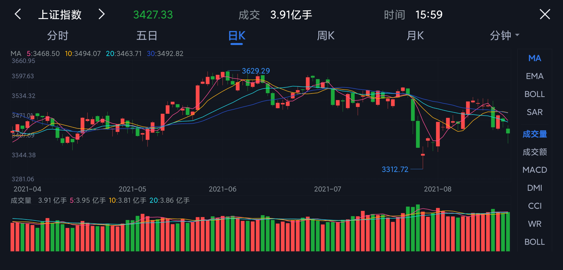 2021-08-20上证指数日K线图,右边的指标你能认识几个?