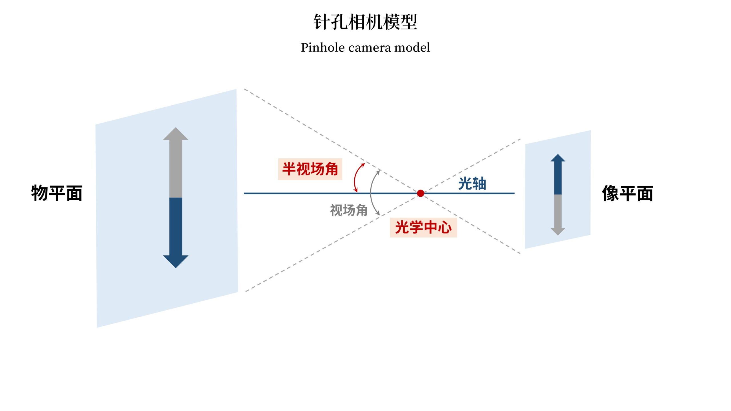 在针孔模型中,「物平面」上的光通过小孔在「像平面」上成倒立的像
