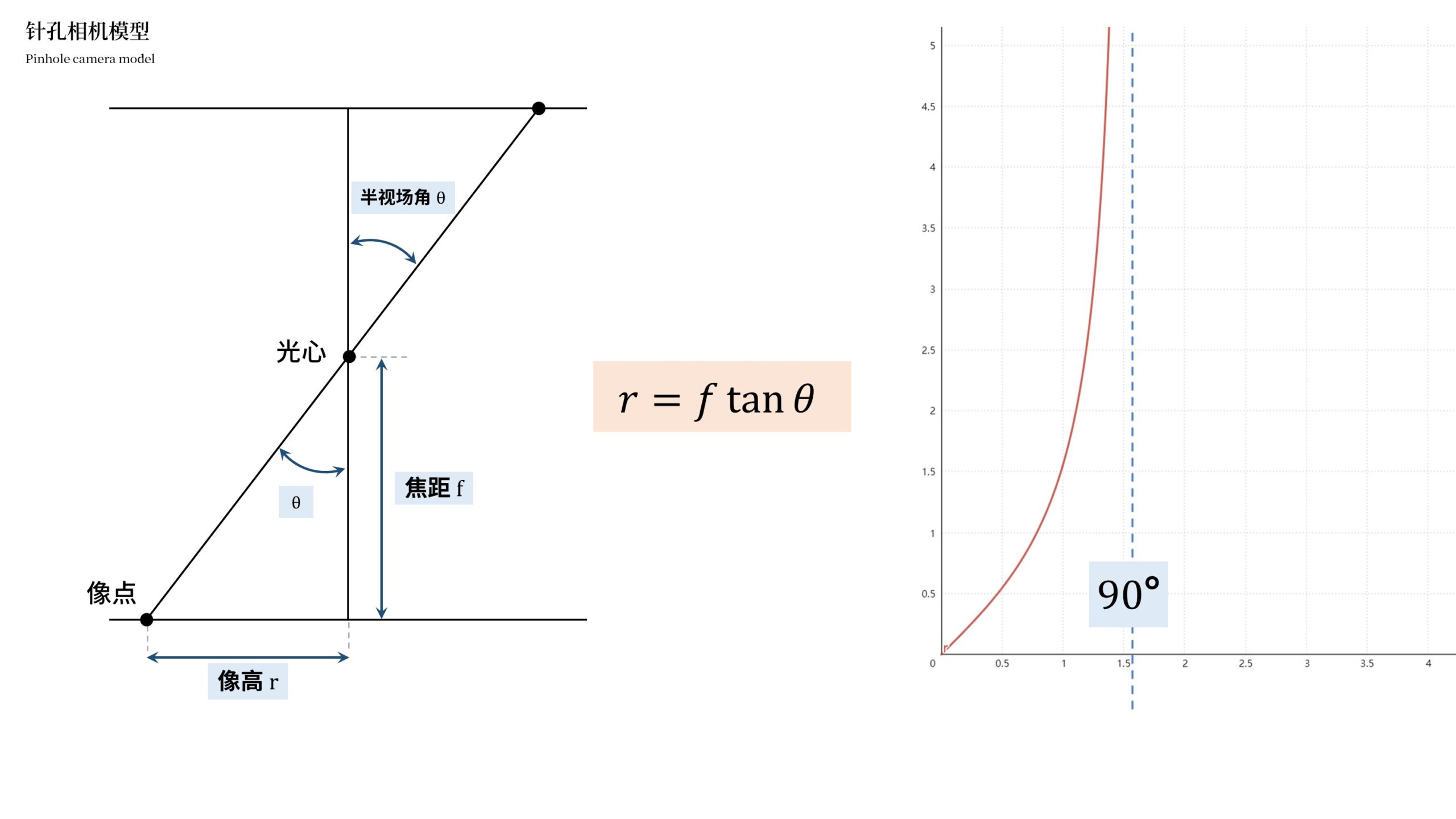 因为tan90°是无穷大,也就是说「半视场角」越接近90°,像高会越来越大,直到变成无穷。