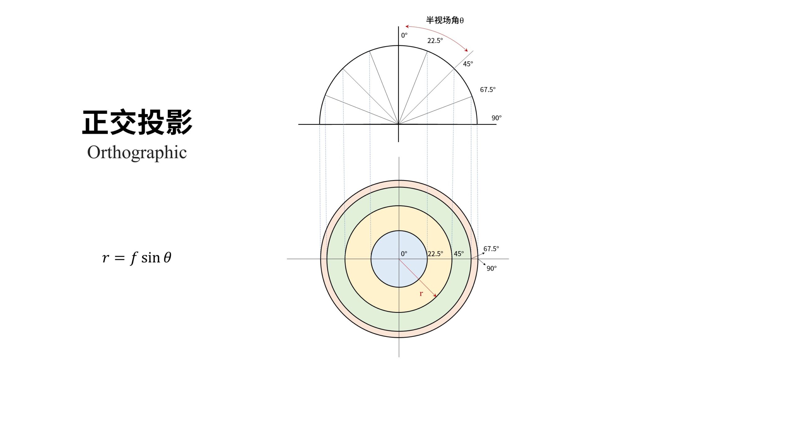 因此鱼眼镜头也需要校正,通常会校正到理想的「等距投影」。