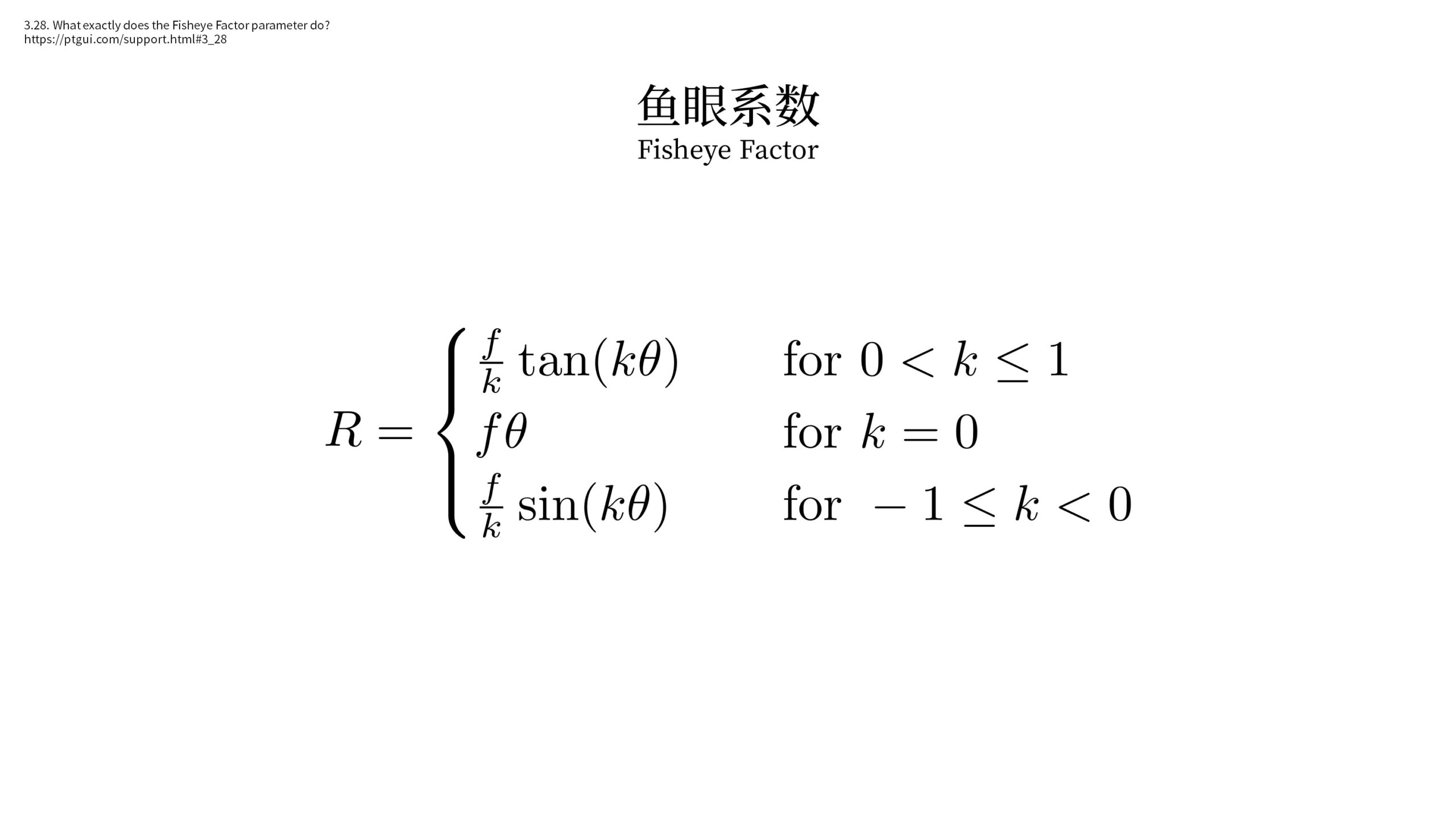 k值为1时,它是标准的「直线投影」,没有鱼眼压缩。