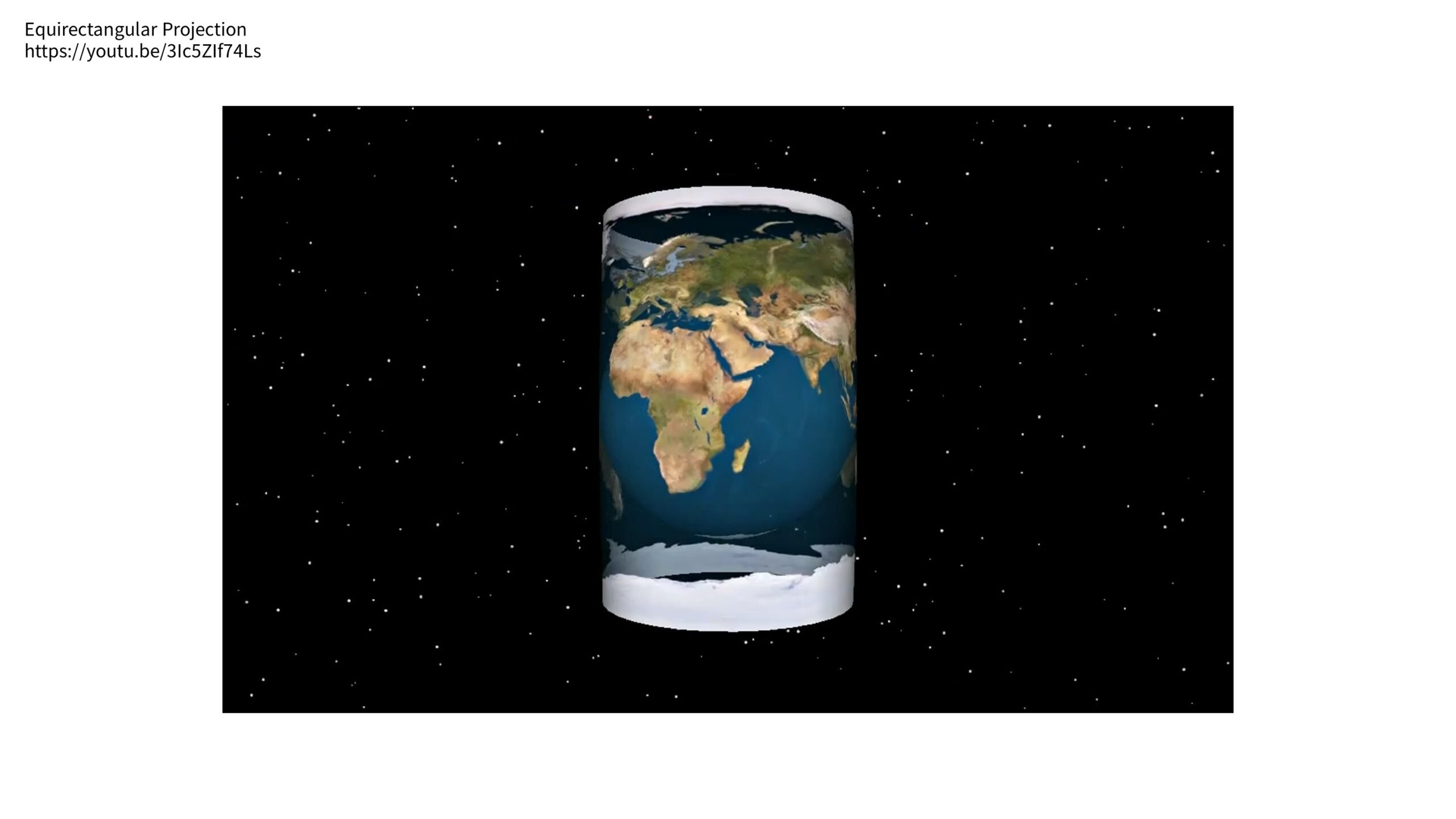 直观来说,如果我们把地球仪按照「等距柱状投影」展开,就可以得到一张长方形的世界地图。
