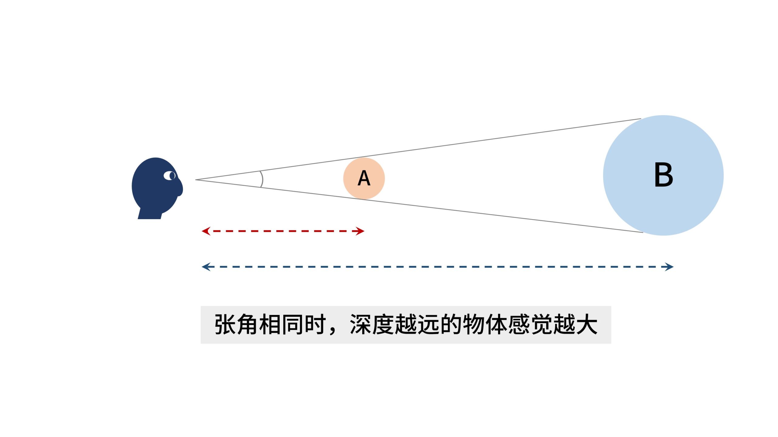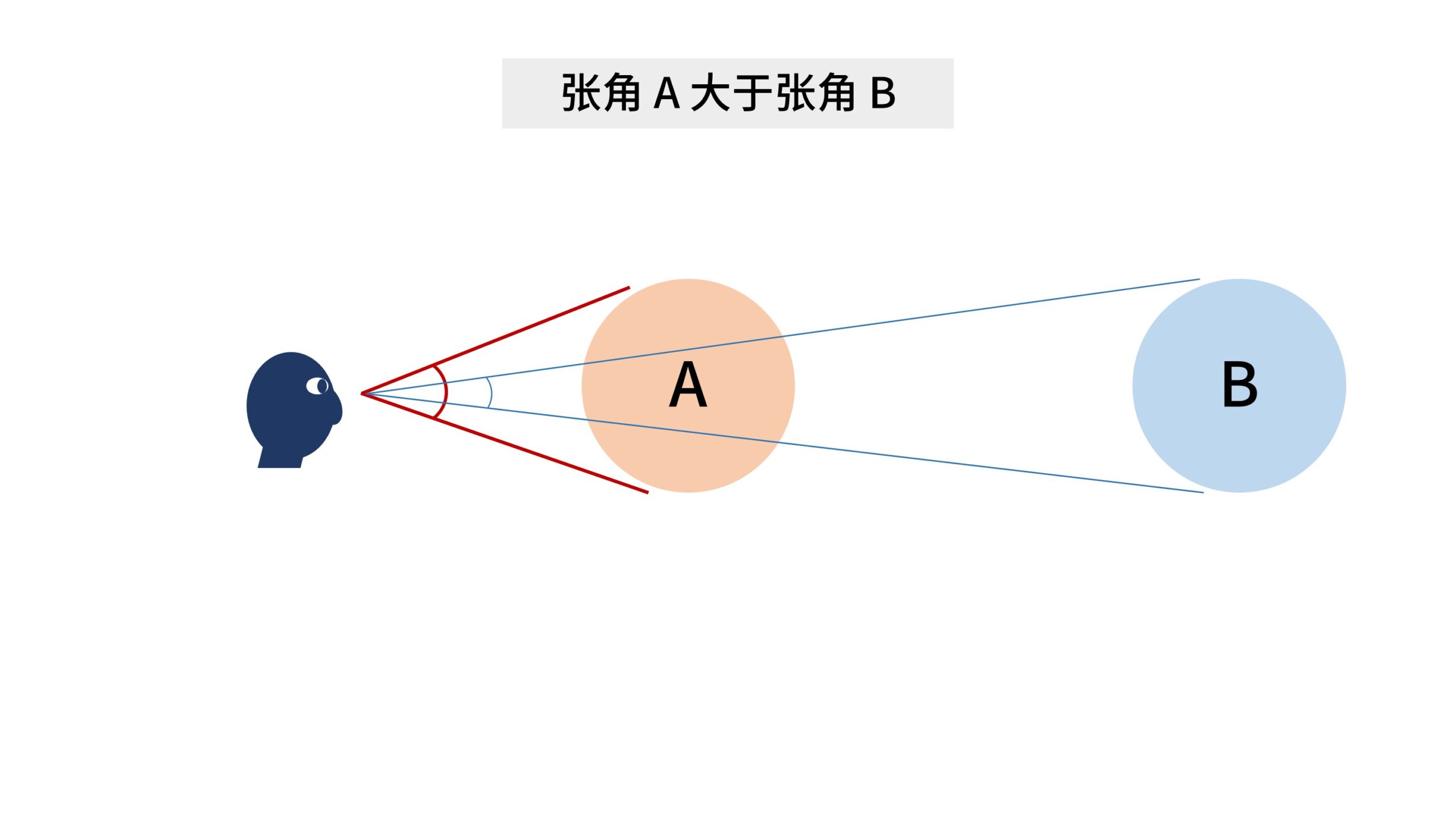 所以对于人眼来说,那个直观的「近大远小」,其实指的是物体张角的大小。