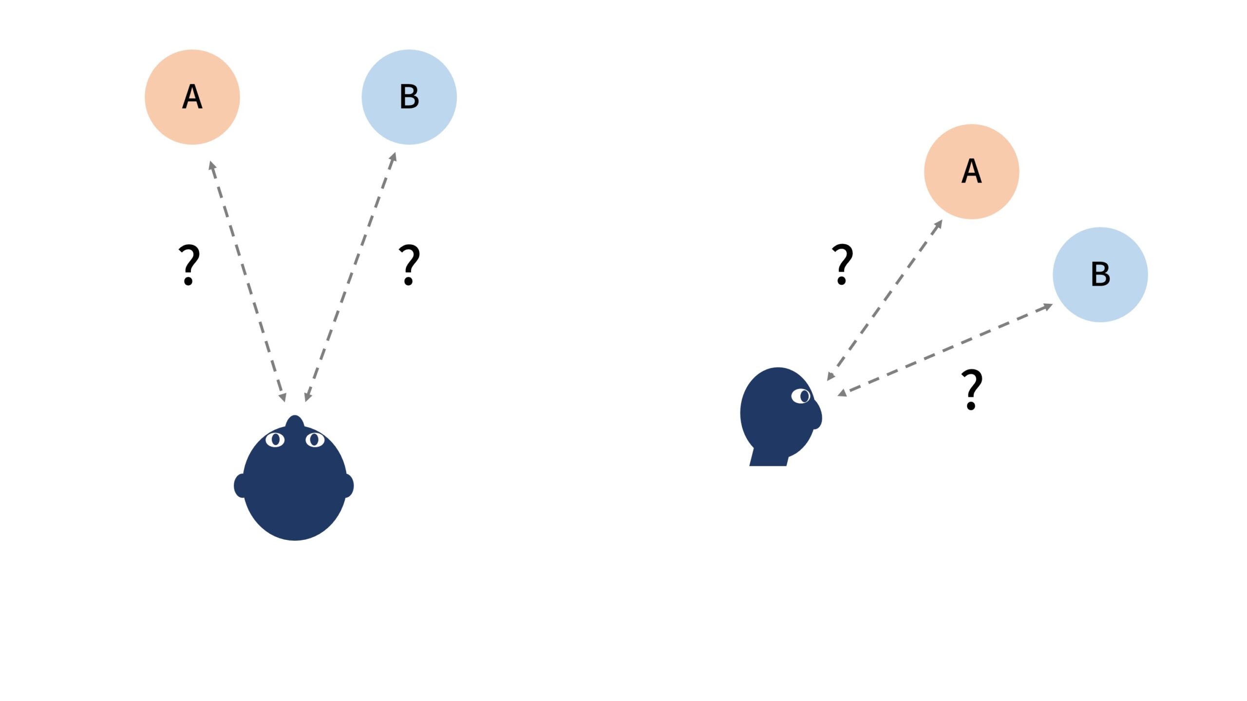 如图,假设在一个无参照物的环境里有两个小球,我们能说这里小球A的体积要比小球B的要大吗?