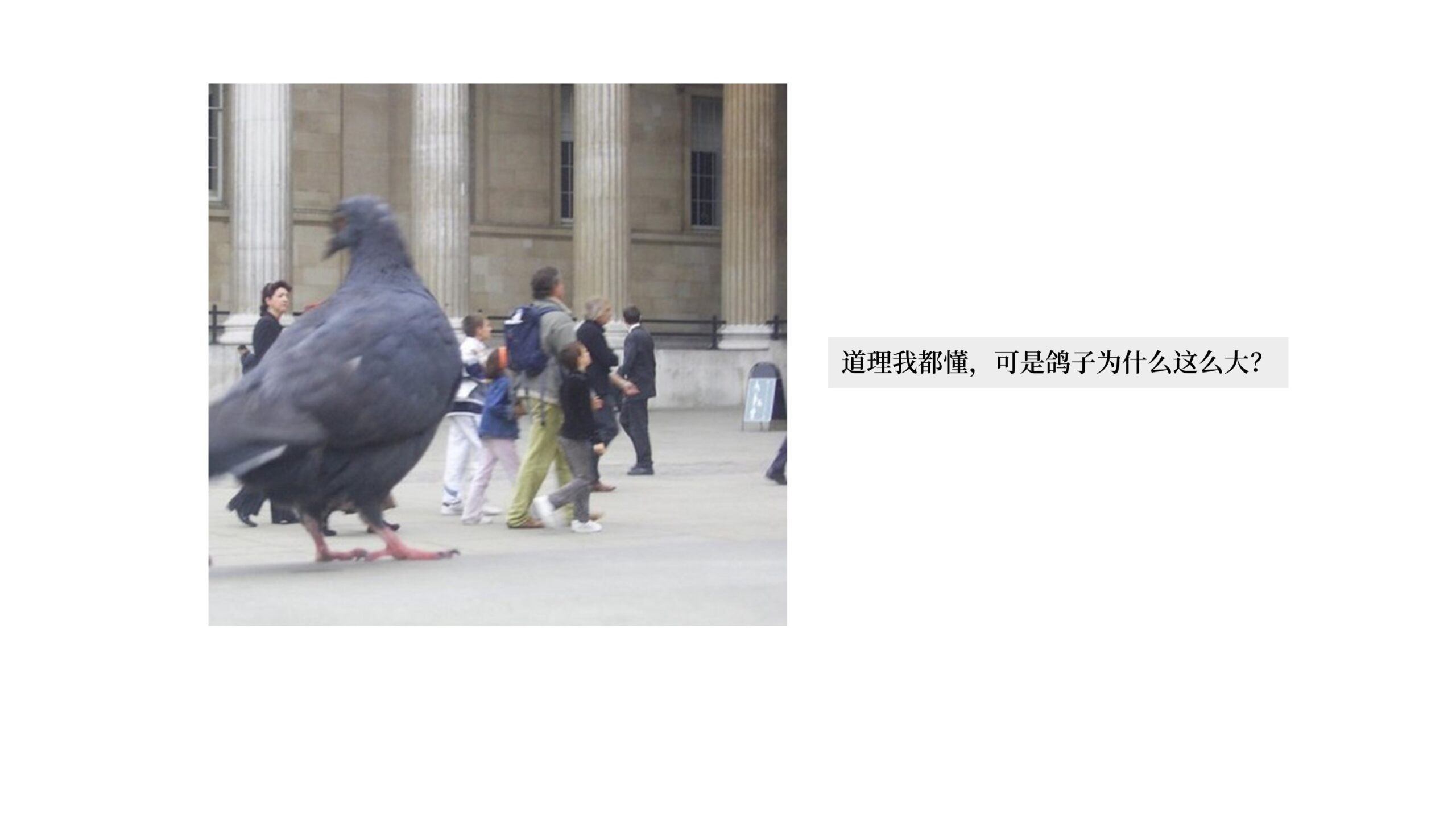 有一张著名的图片很好地说明了这一问题,为什么鸽子这么大?
