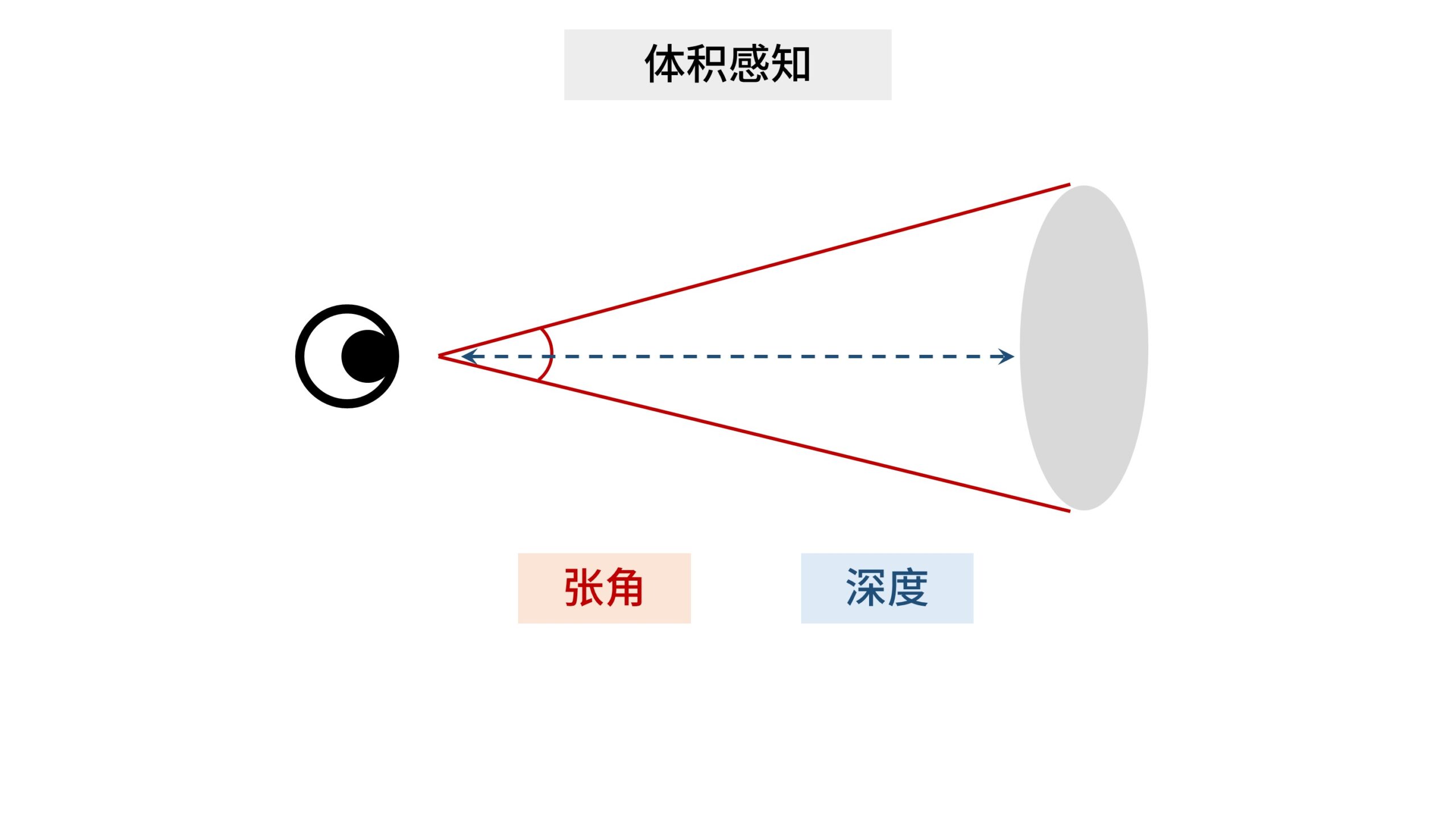 人类在三维空间中的体积感知能力,涉及到2个要素,一个是物体的张角(FOV),另一个就是物体的深度。
